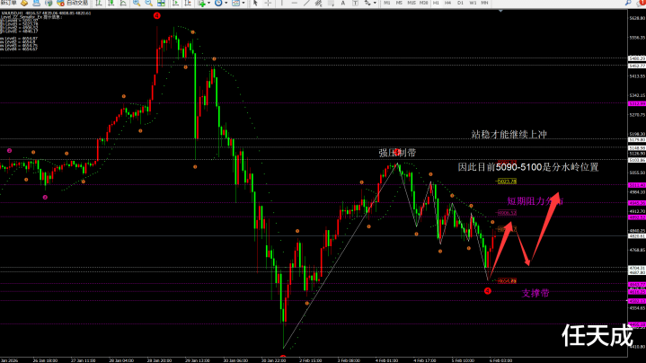 昨日单边下跌260美金。从昨日走势看:,上方阻力是4885-4950以及5020一线。
